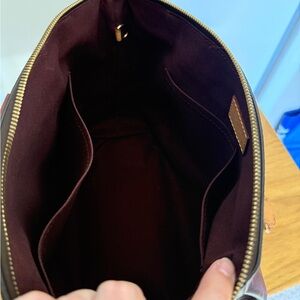 Tote has wear signs and hardware scuffs, water marks.