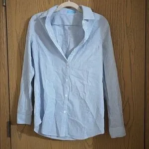 J. McLaughlin women long sleeve Seersucker Stripe Button Front Blouse Blue XS