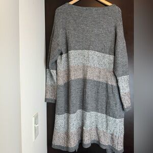 Chic and comfortable cardigan with gray and pink stripes. Ideal for layering and adding warmth.