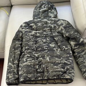 Reversible olive green puffer jacket. 4 pockets. Perfect for cold weather. Size Youth Large