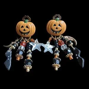 • Enamel Jack-O-Lantern w/5 crazy dangles: