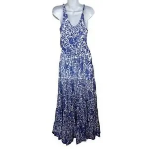 Free People Kikas Printed Maxi Dress in Floral Blue Combo Sz. XS