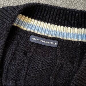 BRANDY MELVILLE Navy blue cable knit trimmed V-Neck Sweater classic style