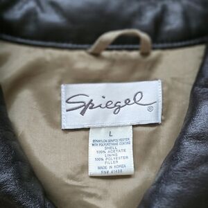 Vintage Spiegel Beige Quilted Jacket with Dark Faux Leather Trim