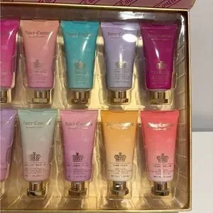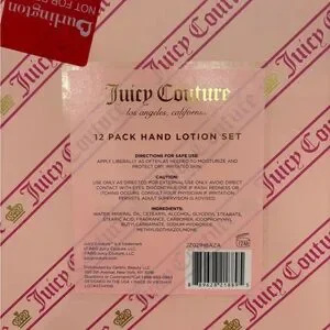 Brand new 12 pack Juicy Couture hand lotion set. Comes in Vanilla Dream, Sparkling Rose, Golden Hour, Paradise, Coco Cloud, Berry Noir, Petal Paradise, Brightest Bloom, Dearest Dahlia, Champagne Toast, Pure Glow and Peach Bellini💖