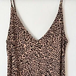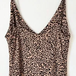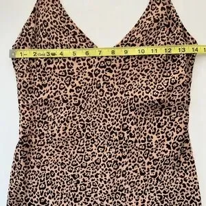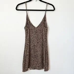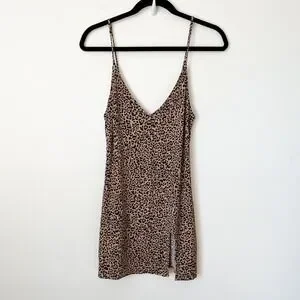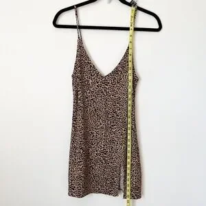 reformation marlowe leopard print mini dress with side slit and adjustable straps. so cute to dress up or keep casual.