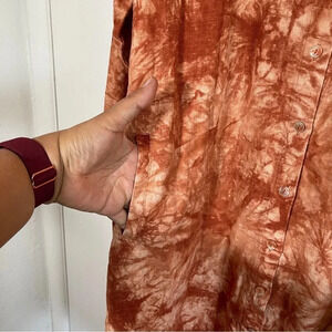 Stylish fall tie-dye maxi dress. Features a button-down front. can be worn open like a duster or as a dress. super cute with a belt. Perfect for casual outings.
