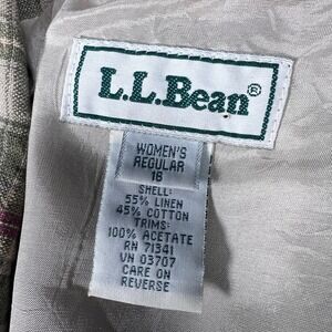 LL Bean Womens Blazer Plaid Linen Blend Career Size 16 Heritage Academia Vintage