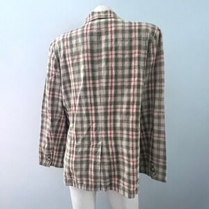 Keywords: LL Bean, Blazer, Plaid, Linen Blend, Womens, Olive, Red, Career, Casual, Size 16, Vintage Blazer, Linen Jacket, Plaid Blazer, Classic Style