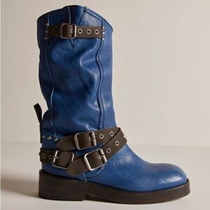 Free People Blue Leather Janey Buckle Boots - sz 9.5