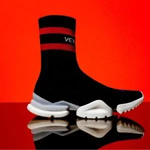 Reebok partnered with Russian streetwear label, VETEMENTS for a progressive design that merges Reebok’s Pump technology with a fit that forms a sock-like design where the upper extends mid-way up the shin with the exact look of a crew sock. Featuring an athletic inspired midsole with a split paneled design, the heel incorporates an air compression insert designed to increase comfort and cushioning.