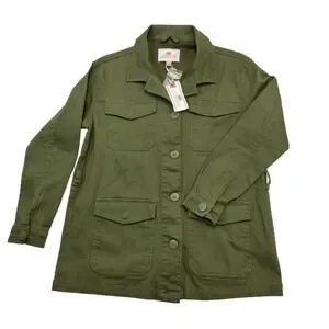1 Sunset Lane Olive Green Utility Jacket Women's Small Button Front Cotton NWT
