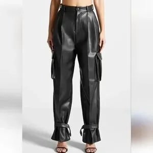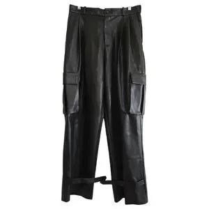 Maniere De Voir Leather Pleated Cargo Trousers in Black 12 Wide-Leg Avante Garde