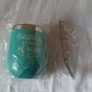 Teal insulated tumbler with a motivational quote. Comes with a matching straw. On the box, come without tag.