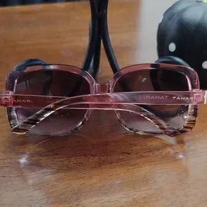 Stylish pink/brown sunglasses by Tahari. Add flair to your look. No scratch. Metal on the sides has a little discoloration as shown in pictures.