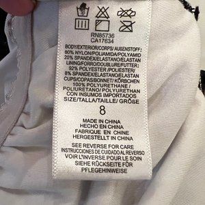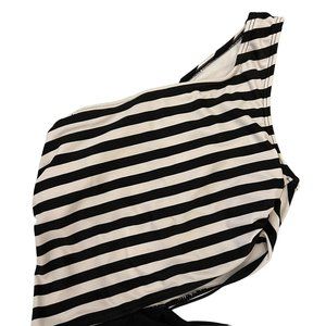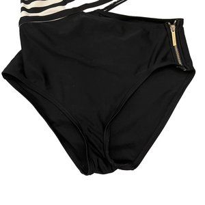 Michael Kors Black & White Stripe One-Shoulder Cut-Out One-Piece Swimsuit Sz 8