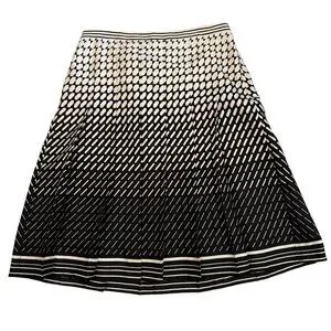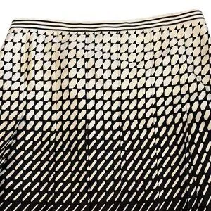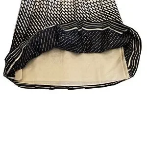 Chic, classic, and effortlessly elegant โ this Ann Taylor A-line skirt features a bold black & cream abstract print on luxurious 100% silk. The drop pleats add graceful movement, while the striped 1" waistband and side zipper give it a clean, tailored finish.