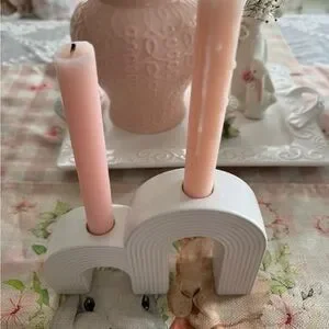 Stylish white arch candle holder paired with delicate Ideal for enhancing any decor.
