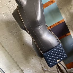 Elegant quilted design. Features a gold chain strap. Perfect for any occasion.