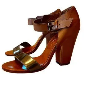LATITUDE I FEMME Italian Natural Leather & Metallic Block Heels Size 37 or 7.5