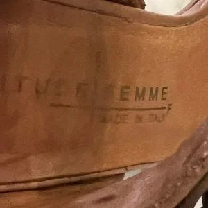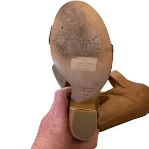 These Latitude I Femme heels are crafted in Italy from genuine leather (vero cuoio) with a sculptural 4” block heel that feels both modern and enduring. The warm natural leather contrasts perfectly with the metallic toe strap, creating a look that’s polished but not flashy.