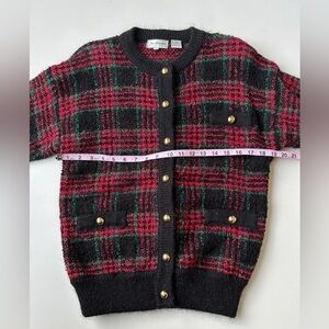 Vintage Jacobsons Holiday Plaid Sparkle Fuzzy Wool Blend Cardigan Sweater Petite