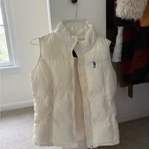Never worn. Chic cream puffer vest with logo detail. Ideal for layering.
