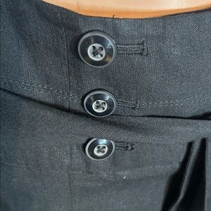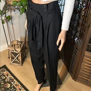 WHITE HOUSE BLACK MARKET 56% LINEN BLACK PANTS. PERFECT CONDITION! No FLAWS! Beautiful pants!!! Pleated in front with three buttons on either side of zipper with black Cloth tie around the waist. Very professional look. Soooo figure flattering! Size 2