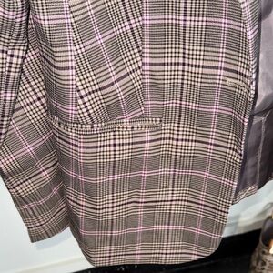 Chic blazer with pink and brown checkered design. Ideal for a stylish look.