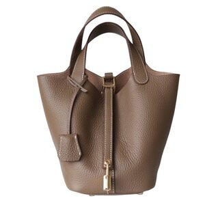 Taupe genuine leather bag very similar in style to the Etoupe Clemence Picotin by Hermes brand new never carried comes with insert, gold lock and key