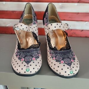 Elevate your look with these stylish polka dot Mary Jane heels. Featuring a classic cream and black design, they bring a touch of elegance to any ensemble. Ideal for both day and night occasions.