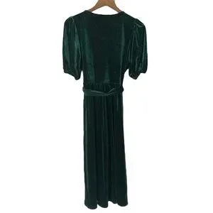 DISTURBIA Zarina Velour Applique Midi Wrap Dress Emerald Green NWT