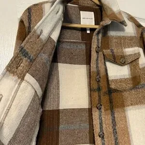 Avec Les Filles Tan and White Plaid Utility Jacket