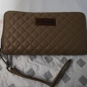 Stylish quilted design. Secure zip closure. Convenient wrist strap. Perfect for essentials.