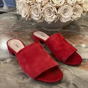 Schutz Red Suede Slide Sandals