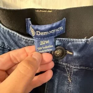 Chic straight leg jeans by Democracy. Dark blue hue. Versatile and stylish.
