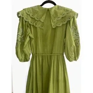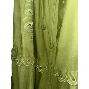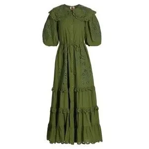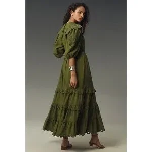 FARM RIO Humming Bird Richelieu Tiered Maxi Dress Size M NWT Green Forest Fairy