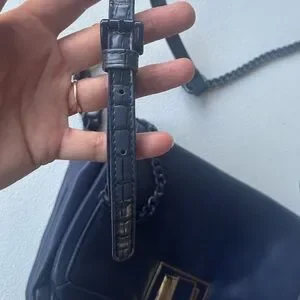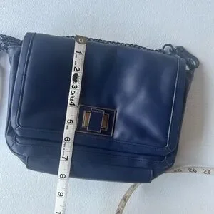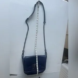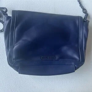 Chic blue magenta handbag by Steve Madden. Features a zippered pocket inside. Very pretty. Chain attaches to a standard strap with adjustable buckle. Great pre owned condition. Clean. Has a couple very small discrepancies. See last two pics