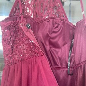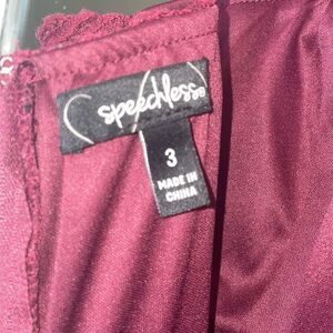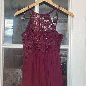 Preowned speechless burgundy lace halter top maxi gown dress junior teen size 3