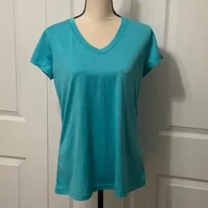 NWOT Xersion Women's Aqua V-Neck Short Sleeve Tee, Loose Fit, Large