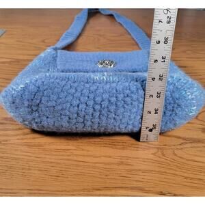 Handmade Felted Wool Shoulder Bag Blue Knit Purse Cotton Lined with Pockets Boho