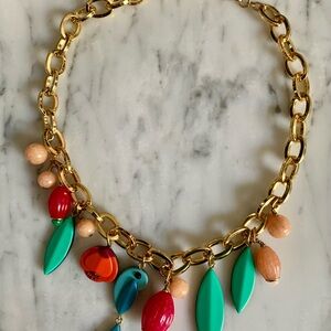 Kate Spade Gold Statement Chunky & Funky Multicolor Beaded Charm Necklace