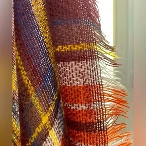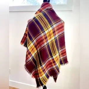 NEW Elegant Cool Weather Square Scarf Wrap, Plum Gold Plaid, Super Soft!