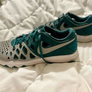 Eagles Nike sneakers in green and white. Sleek and versatile design. Gently used. A few stains that can be washed out. From a smoke free home.