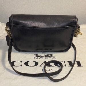 Sleek black leather with elegant gold hardware. Perfect for everyday use. Timeless Coach design.