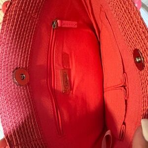 Talbots Tote Women Woven Coral Pink Beaded Handle Beach Bag Purse Summer Handbag