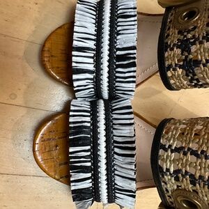 - Black/white cut raffia foot strap