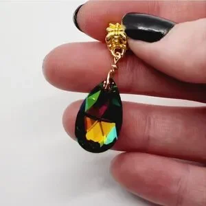 Sparkly! Faceted Rainbow Titanium Crystal Teardrop Gold Column Pendant