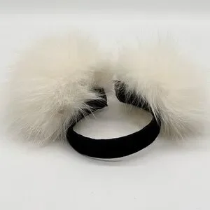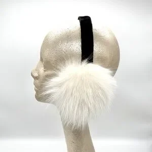 Indulge in warmth and elegance with these exquisite earmuffs, crafted from genuine Arctic fox fur. The plush, voluminous fur in a natural white hue offers exceptional softness and striking visual appeal. Designed for comfort as well as style, each earpiece is lined with elastic and plush velvet for a gentle, cozy fit against the ears. A sleek black velvet headband completes the look, adding a refined touch while ensuring a secure hold. Lightweight yet insulating, these earmuffs provide superior protection against the cold—making them the perfect blend of luxury, comfort, and practicality for winter wear