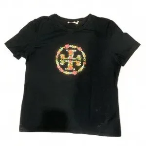 Tory Burch Black Tee with Floral Logo